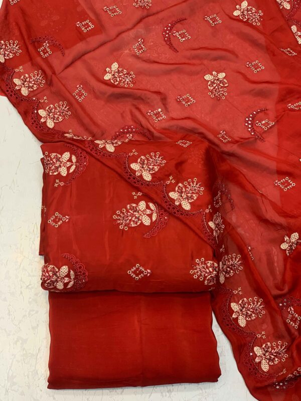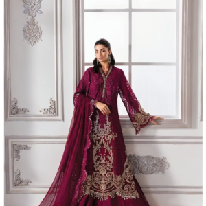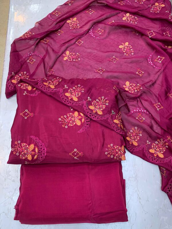 Dark Crimson Red Embroidery 3pc