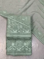 Muted Sage Green chiffon embroidered suit