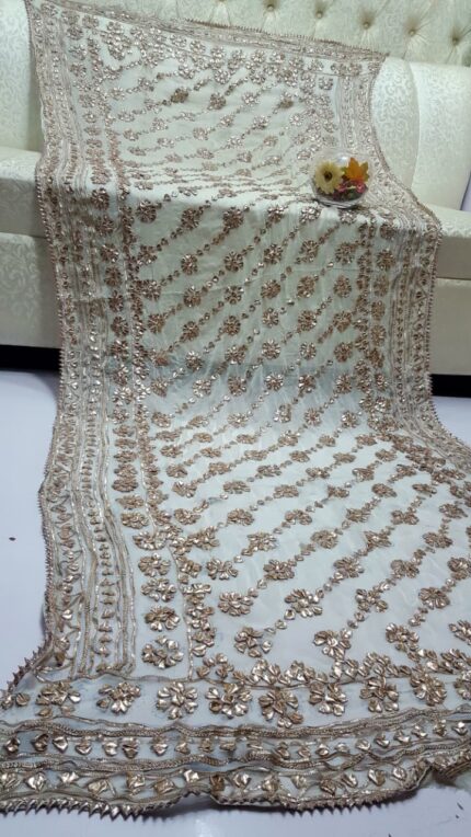Traditional LCD rose gold gotta Embroidery heavy jall shawals